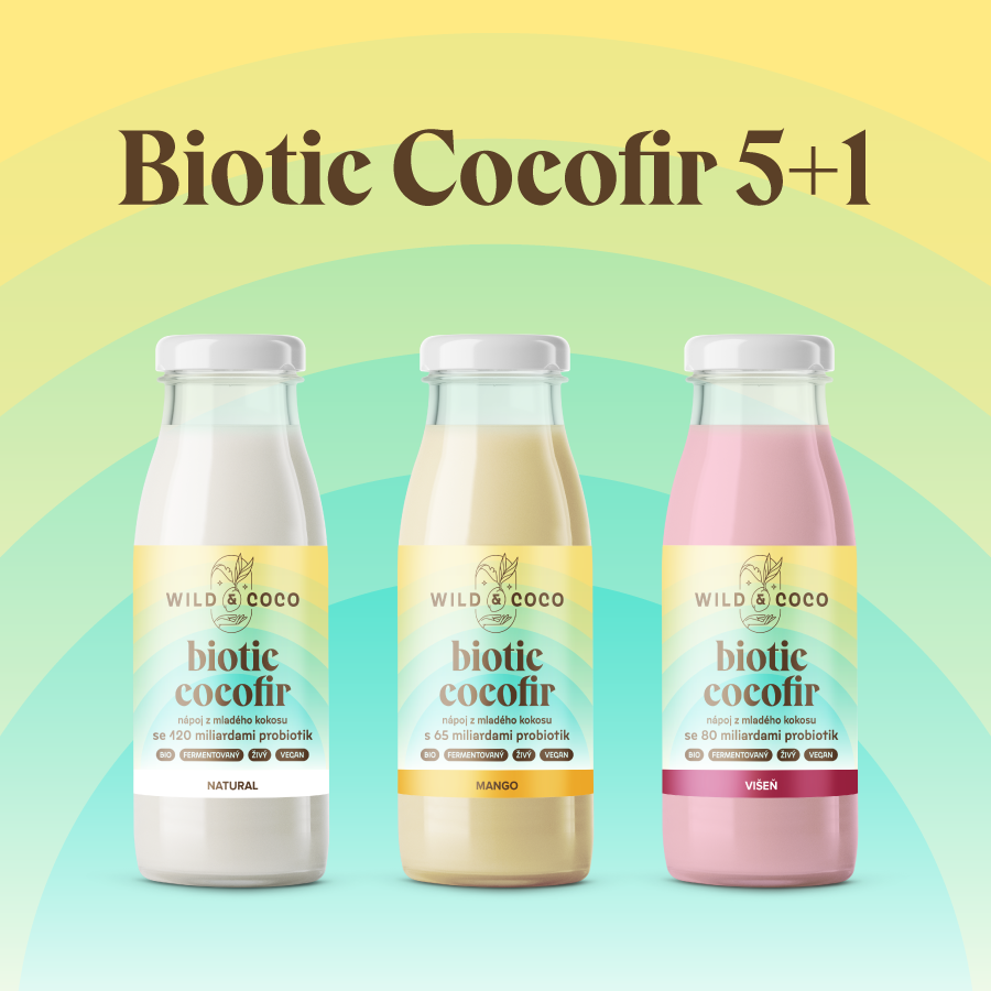 Tolik radosti váš střevní mikrobiom dlouho nezažil! Výhodné balení Biotic Cocofiru 5 + 1 vám do života přinese týdenní zásobu snídaní či svačinek s probiotickým přesahem. Z příchutí Young Coconut, mango a višeň si vybere každý člen vaší rodiny svého favorita.