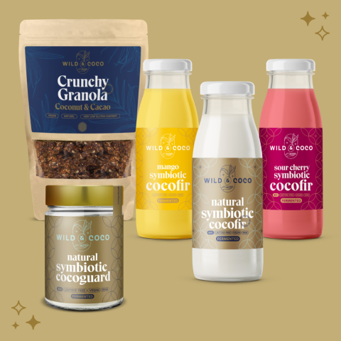 Symbiotic Cocofir pomáhá zlepšovat zažívání a obranyschopnost a podporuje kvalitní spánek. Potěší vás jemně nakyslou kokosovou chutí, kterou kombinujeme s BIO mangem či višněmi. Jediné balení tělu přinese 63 miliard prospěšných bakterií.