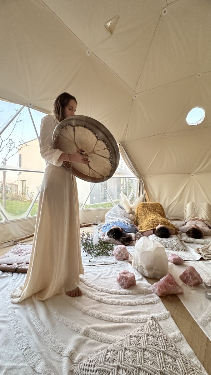 - Sound healing meditace – hluboce uvolňující hudební lázeň pomocí křišťálových mís, zvonkohry, handpanu či hlasu. Harmonizuje nervový systém, snižuje kortizol a aktivuje sebeléčivé procesy těla.