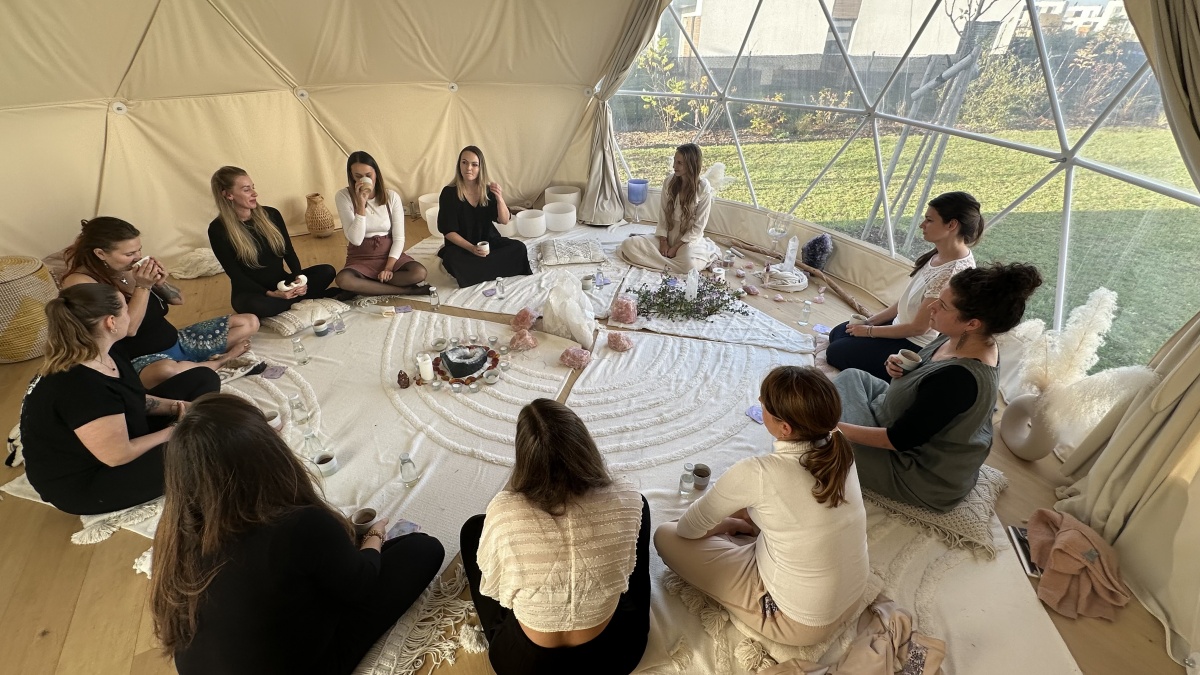 - Sdílení v kruhu – prostor, kde můžete být slyšeny bez hodnocení. Tato jednoduchá praxe, kdy ženy naslouchají jedna druhé bez reakce, přináší hlubokou úlevu, sebepřijetí a inspiraci.