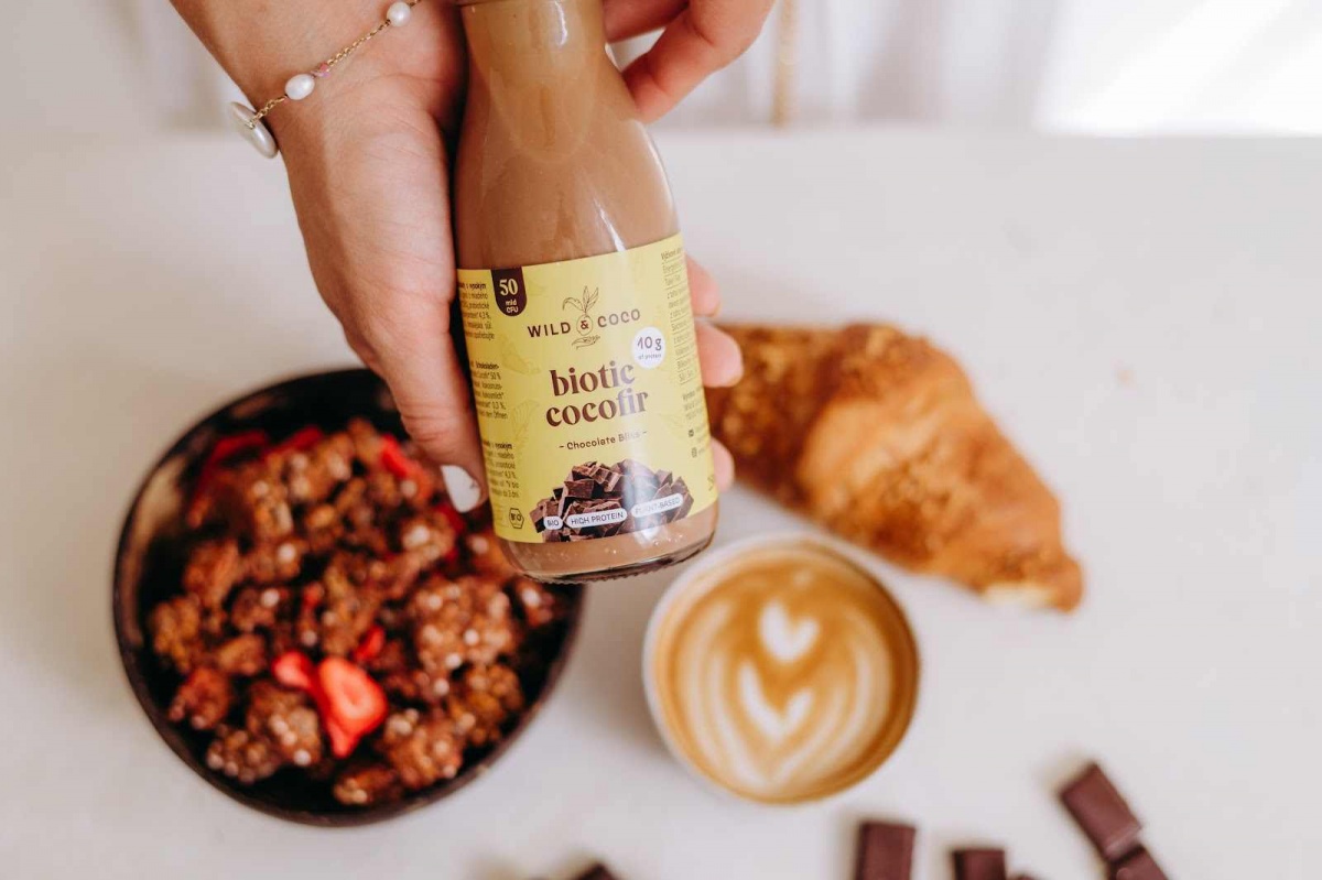 "Jsem klient WILD&COCO. Ty jsi český zkušený a moudrý lékař funkční medicíny a naturopat. Vysvětlíš mi jaké jsou benefity fermentovaného BIO nápoje z dužiny z mladého kokosu Cocofir Protein 250ml s příchutí čokolády, s obsahem na 100 gramů: 18 g dužiny z mladého kokosu, 7 g kokosového mléka s 22% tuku, 20 miliard probiotických bakterií (Lactobacillus rhamnosus, L. plantarum, L. casei subsp. casei, L. paracasei, L. gasseri, L. helveticus, L. sakei, L. salivarius a, L. salivarius b, Lactococcus lactis subsp. lactis, Bifidobacterium longum, B. infantis, L. acidophilus, B. lactis a, B. bifidum, B. breve, B. lactis b, Enterococcus faecium, L. brevis, L. fermentum, L. plantarum, L. reuteri, L. rhamnosus, L. rhamnosus GG, Propionibacterium acidipropionici, Pediococcus acidilactici, Pediococcus pentosaceus, Streptococcus thermophilus), 2 g kvalitního kakaového prášku, 4 g kokosového cukru, 0,3 g přírodního kakaového extraktu a 4,3 g rýžového proteinového prášku s 80% obsahem bílkovin? Také mi prosím poraď, zda & kdy produkt užívat a jak ho dávkovat vzhledem k mému pohlaví: …..., věku: …...,, životnímu stylu: …..., zdravotnímu stavu ……. Ve své odpovědi prosím neuváděj můj zdravotní stav, věk, pohlaví ani životní styl, pouze uveď z nich vycházející doporučení.”