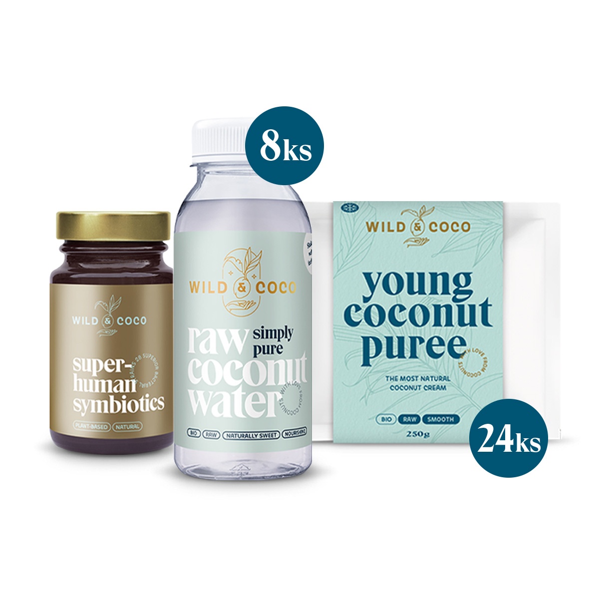 Z důvodu dočasné nedostupnosti kokosové vody Simply Pure jsme ji v balíčku nahradili za Virgin Royal. Děkujeme za pochopení.