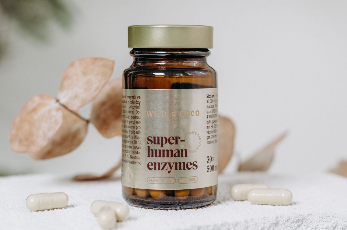 Směs čistě rostlinných enzymů v podobě Superhuman Enzymes organismu ulehčuje práci – pomáhá „odemknout“ více užitečných látek z potravy, může tak přispívat k celkové vitalitě a dobrému pocitu z jídla.
