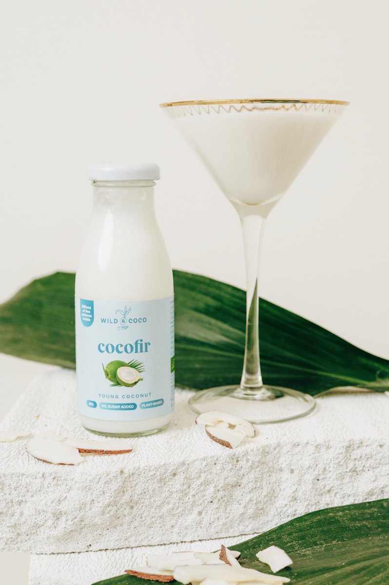 Jak to použít: kokosová voda průběžně během dne, kefír jako lehká fermentovaná opora, probiotika pravidelně.