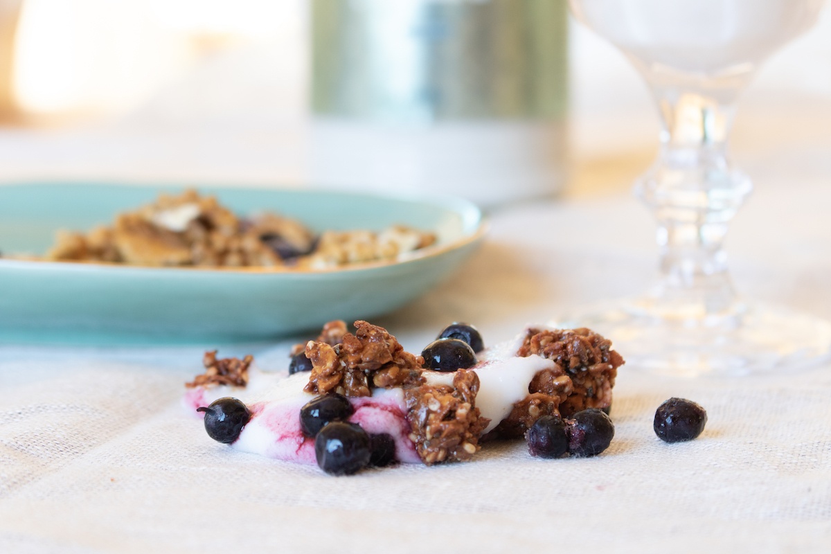 Ich liebe symbiotischen Kokosjoghurt. Sein köstlicher leicht säuerlicher Geschmack streichelt mich immer wieder. Es hilft mir bei der Verdauung und ich nehme es regelmäßig als Snack oder sogar als ganzes Mittagessen, wenn ich den Tag auflockern möchte. Meistens mische ich es mit Chiasamen und füge Früchte wie Heidelbeeren, Erdbeeren oder Himbeeren hinzu.