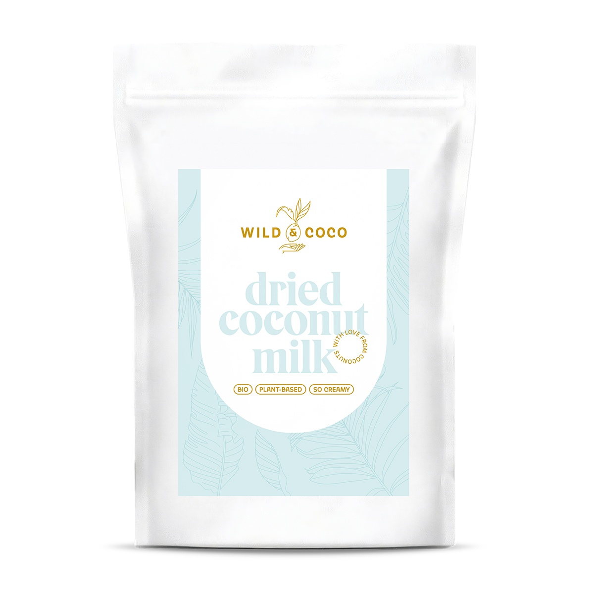 Sušené kokosové mlieko v prášku s mnohými spôsobmi použitia. Takzvané "šťastie v prášku", ako ho nazývame u nás vo Wild & Coco. Má lahodnú a plnú kokosovú chuť a vôňu. Je skvelou náhradou živočíšneho mlieka a smotany, pretože prirodzene neobsahuje laktózu. Sušené kokosové mlieko vzniká zmiešaním a dehydratáciou kokosovej dužiny a jeho výhodou je dlhšia trvanlivosť a jednoduchšie skladovanie ako v prípade tekutého mlieka. Je preto skvelým doplnkom každej kuchyne - veľkej, malej alebo tej, do ktorej nechodíte tak často.